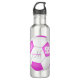 Cette bouteille d'eau en acier inoxydable de football girly est équipée d'un ballon de football de style traditionnel avec des panneaux roses et blancs avec le nom du joueur, monogramme et numéro de maillot - par katz_d_zynes