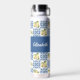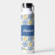 Serene blue tile French country lemon pattern water bottle featuring a customizable name, to complement your style in the yoga studio and beyond. Personalize with your name or that of a loved one.