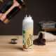 Design botanique avec des couleurs vertes, oranges et beiges et des éléments d'aquarelle.