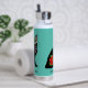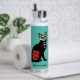 Un chat noir avec le jour de la mort crâne de sucre maquiller sur un fond de turquoise.
