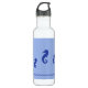 Graphique de cheval de mer en bleu. Trois animaux au milieu (un grand, deux petits). En bas, une rangée sous le motif d'ondes de pétoncles. Arrière - plan en bleu poudre.