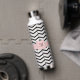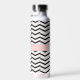 La combinaison classique de noir et blanc est accentuée par des couches de rose rousse dans ce motif chevron tendance et classe avec des couches d'épaisseurs différentes pour briser les choses. Customisez le monogramme avec votre initiale pour créer une bouteille d'eau qui est la vôtre.