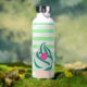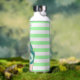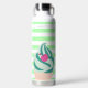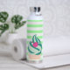 Bouteille personnalisée à rayures vert menthe mignonne et moderne avec crème glacée blanche à la menthe et cerise sur le dessus.
