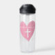 Cette belle bouteille d'eau présente une croix printanière fleurie et "Jean 3:16" d'un côté et un coeur de couleur d'eau avec une croix qui dit "Pour Dieu si aimé le monde" de l'autre côté.