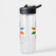 Une bouteille d'eau de haute qualité avec le logo de United Women in Faith et la ligne d'étiquettes : nous croyons que l'amour dans l'action peut changer le monde.