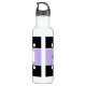 Personnalisez cette bouteille d'eau pour enfants pour l'école avec un nom. Conçu en noir avec une bande violette, un trombone et des points blancs.