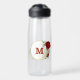 Belle bouteille d'eau avec des fleurs rouges et blanches et des feuilles vertes