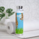 Girafe mignonne dans l'herbe avec un singe et des marguerites.