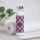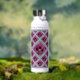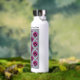 Partout, vous passerez de la beauté avec une bouteille d'eau isolée contenant un message inspirant ainsi qu'une belle conception contenant des photos de jolis pavots violets entourés de bordures faites de motifs intrigants trouvés dans l'écorce d'arbre.