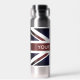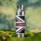 Drapeau anglais Union Jack bouteille d'eau isolée. Pratique pour les boissons chaudes et froides. Drapeau britannique vintage de Grande-Bretagne, Angleterre. Argent ou couleur personnalisée. Idéal pour le sport, la randonnée, le travail et plus encore. Utilisez pour le café, l'eau, le thé, etc.