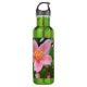 La photo originale de MaeFlowers d'une fleur de jatropha sur cette bouteille d'eau est un closeup, montrant les cinq pétales entourant les points jaunes flous au centre. La couleur rose est plus profonde à la base de chaque pétale, et s'estompe vers un rose pâle aux bords extérieurs. Sur la photo nous voyons de nouveaux bourgeons pour plus de fleurs poussant autour de cette beauté de jardin, et les verts naturels doux de l'arrière - plan nous invitation à explorer...