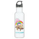 Une bouteille d'eau avec une illustration montrant une fine paresse brune mignonne qui luit joyeusement sur une branche d'arbre. Un arc-en-ciel coloré derrière lui, accompagné d'un soleil rose planant sur la tête. Mignonne, adorable et tendance. Un peu d'humour avec le texte qui dit : Mode Sloth. Peut être modifié ou personnalisé avec un nom si vous le souhaitez.