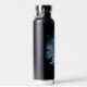 Un dinosaure d'Allosaurus regarde un ciel bleu vif tandis qu'un ptérosaure vole au-dessus.