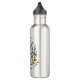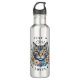 Chat blanc gris clair à l'aquarelle, entouré de fleurs rose et bleue.