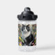 Un chat noir et blanc est installé au milieu d'un jardin animé de fleurs colorées, entouré de papillons. La scène est baignée d'un éclairage doux et chaleureux, créant une atmosphère de conte de fées.