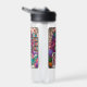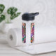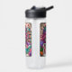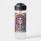 Design coloré et dynamique avec une carte tarot amusante avec un squelette féminin. Le squelette a des cheveux roses sauvages avec des fleurs dedans, un crâne de sucre, et tient un livre ouvert. Le texte coloré dit : "Le ver de bibliothèque". Ce design est disponible sur une grande variété de produits.