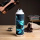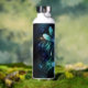 Deux libellules transparentes, lumineuses, turquoise, artistiquement dessinées sur l'arrière - plan de nuit avec des algues luminescentes et des lucioles. libellule éclatante.