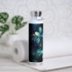 Deux libellules transparentes, lumineuses, turquoise, artistiquement dessinées sur l'arrière - plan de nuit avec des algues luminescentes et des lucioles. libellule éclatante.