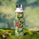 Bouteille D'eau Mix-fruits tropicaux, fleurs et feuilles en noir
