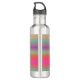 Une bouteille d'eau personnalisée avec un motif à bandes horizontales coloré et un monogramme unique au centre.