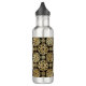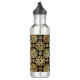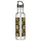 Bouteille d'eau monogramme en acier inoxydable noir et fausse feuille d'or avec un motif floral moderne.