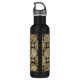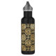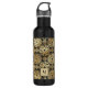 Bouteille d'eau en acier inoxydable moderne noir et or avec un motif floral moderne et un monogramme.