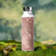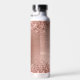 Cette bouteille d'eau élégante est ornée d'arrière - plans en métal brossé or rose avec des bordures de Parties scintillant Faux scintillantes. Ajoutez votre nom et votre initiale pour une touche personnelle. Parfait pour être élégant en déplacement.