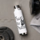 Papillon noir et blanc volant avec l'expression positive "faites confiance au processus" bouteille d'eau. Bouteille d'eau simple et moderne pour elle. Une bonne bouteille d'eau pour le stade transformationnel de votre vie.