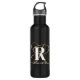 Cette élégante bouteille d'eau monogramme personnalisée élégante est dotée d'un monogramme initial en or avec une initiale blanche et un nom en gras superposé, sur un arrière - plan noir.