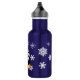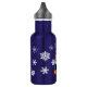 Un mignon manchot dessiné à la main avec des boules de neige et des flocons arrière - plan. Bouteille personnalisée.