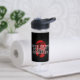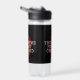 Une bouteille d'eau pour les amateurs de podcast vrai crime partout, avec une empreinte sanglante avec un texte de type machine à écrire "True Crime Podcast Obsédé".