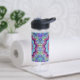 Bouteille d'eau avec le mandala arc-en-ciel numériquement créé à partir de ma photographie originale.