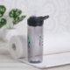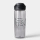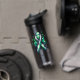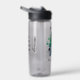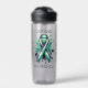 Water bottle to help spread awareness for Bipolar Disorder with a black, white and green striped awareness ribbon. An inspirational quote with the words, "Rising through the highs and lows."