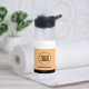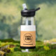 Un arrière - plan moderne à trois tons rayés (blanc/pêche/noir) et des lettres de blocage ajoutent une touche audacieuse mais professionnelle à cette bouteille d'eau. Personnalisez avec le logo et le site Web. Les polices et les couleurs peuvent être modifiées à votre gré. Idéal pour les opportunités d'image de marque de l'entreprise (y compris l'acquisition/la rétention des clients, les incitations des employés, et plus encore). Design © W.H. Sim, Tous droits réservés. Voir plus sur zazzle.com/expressionsoccasions