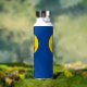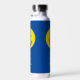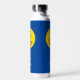 A green-eyed yellow sun smiling on a blue background. Customize by adding your own text. You may also change the background color as well as the font and text color.