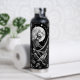 {{{ AI ART }}} Skeleton joue sa harpe sur une scène lune. {{{ B & W }}}