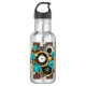Bouteille D'eau Steampunk Clock and Turquoise Roses on Striped