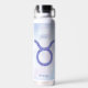 Cette jolie bouteille d'eau Taurus de lavande et de violet personnalisée présente votre signe astrologique du Zodiac dans un beau éclat comme les constellations. Customisez ce joli cadeau de symbole astrologique avec votre nom dans un magnifique script cursif pour quelqu'un qui a un anniversaire fin avril ou début mai.