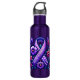Bouteille d'eau avec ruban de sensibilisation MCAS Warrior en violet avec pois blancs, fleurs et papillons.