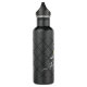 Bouteille d'eau en acier inoxydable noir noir et blanc avec monogramme en raquette de tennis dans une police de script de calligraphie élégante et mignonne avec un motif arrière - plan subtil.