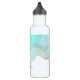 Bouteille d'eau au design estival serein. Image turquoise / aquarelle vert aqua avec une bordure ondulée en faux or. Élégant et adorable.