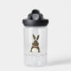 Ce design mignon est composé d'un lapin brun et flou. La silhouette est le dos du lapin, qui montre son collier rose, avec des points blancs. Et bien sûr, le chalet blanc flou du lapin. Le texte peut être customisé.