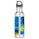 Bouteille d'eau avec un chat Van Gogh dans le style de Starry Night! Un chaton noir moelleux perche sur une table contre un ciel bleu nuit et une lune jaune. Un cadeau à la purr pour les amoureux de les chats et collectionneurs d'art hollandais !