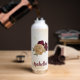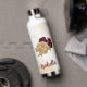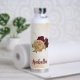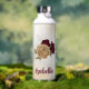 Bouteille d'eau magnifique avec des fleurs bordeaux et beige or avec des feuilles vertes .