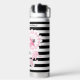 Le design du produit est composé d'un flamant avec des motifs cachemire kaléidoscopiques dans les tons rose sur le noir et blanc rayures arrière - plan. Ce design d'oiseaux tropicaux avec texte personnalisé fait une bouteille d'eau moderne et unique.