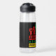 Bouteille d'eau avec justice sociale et design de mot d'histoire noire avec poings surélevés avec texte "Junetten - le Jour de l'Indépendance Réelle" en Pan Afrique couleurs combo sur arrière - plan noir.