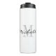 Chaudière thermique monogramme sur mesure pour le café, le thé et autres boissons. Design élégant noir et blanc avec nom personnalisé et lettres initiales monogrammées. Une idée cadeau d'anniversaire élégant pour les hommes et les femmes. Faites-en un pour papa, père, mère, mère, collègue, mari, femme, ami, coach, enseignant, infirmière, etc. Boire classique 12oz en acier inoxydable. Accessoires mignons pour la maison ou le bureau.