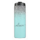 Aqua Blue - Turquoise et argenté Parties scintillant étincelante brossé métal Monogramme Nom Buvez un croustillant. Cela rend le cadeau parfait pour 16 ans, mariage, douche nuptiale, anniversaire, baby shower ou bachelorette pour quelqu'un qui aime le luxe glam et les styles chic.