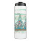 3 gnomes bleu aqua aquarelle sur la plage avec étoiles de mer patiné arrière - plan de bois vert mer.