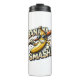 This playful illustration features a cheerful banana wielding a baseball bat, declaring, "Banana Smash!" with a big grin.